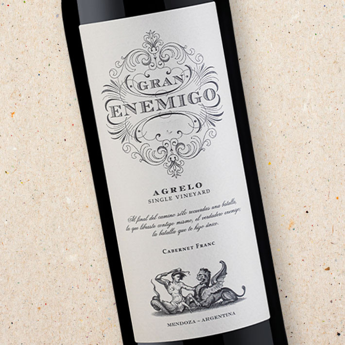 Gran Enemigo Agrelo showcases the elegance and complexity of Cabernet France complemented by Merlot grown in deep, clay soils The fruit comes from the Agrelo vineyard which is located at just under 1,000 metres. It is one of four Single Vineyard Cabernet Franc wines crafted by winemaker Alejandro Vigil. Each wine features the same blend, 85% Cabernet Franc and 15% Malbec, follows an identical vinification process and ageing time, highlighting their shared DNA. The distinction arises from the unique soil types and altitudes of their origins, showcasing the variety's transparency and its ability to reflect the nuances of each terroir. For Agrelo, the focus is on the character of the deep clay soils. While not certified, the vineyard adheres to organic practices, prioritising biodiversity, water conservation, and integrated farming methods. Natural herb and pest control further underscores their commitment to sustainable viticulture, complemented by the winery's sustainability certification from Bodegas of Argentina. High trellises and drip irrigation maximise sun exposure and water efficiency, while manual harvesting ensures careful selection of only the finest grapes.